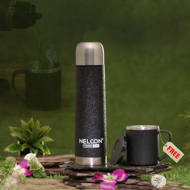 24 Hrs Hot & Cold Flask with Temperature Display + Free 2 Double Wall Cups (1TF2C)