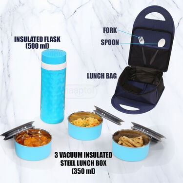 3 Vacuum Insulated Steel lunch Box with Flask (3LBF)