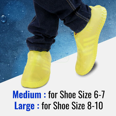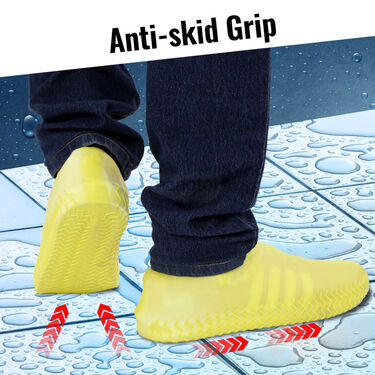 These rain shoe covers are designed to keep your footwear protected from wet and muddy conditions. Made from stretchable silicone, they offer a secure fit for various shoe sizes. The anti-skid grip on the bottom ensures stable footing, even on slippery surfaces. Available in versatile colors like black and yellow, these covers are suitable for both men and women. They come in two sizes, M and L, to fit a range of shoe sizes comfortably. Ideal for rainy days or outdoor activities, they help keep your shoes clean and dry. Easy to put on and remove, these covers are a practical addition to your rainy day gear. The flexible material ensures durability and long-lasting use. Perfect for anyone seeking reliable protection for their shoes during inclement weather