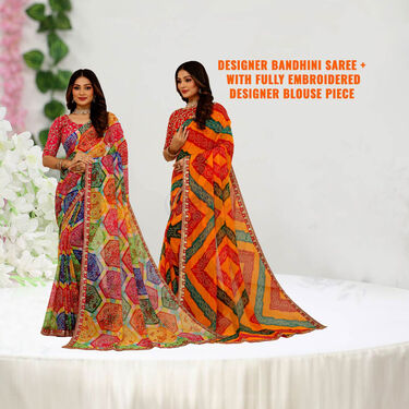 Designer Bandhini Saree With Fully Embroidered Designer Blouse (BDS1)