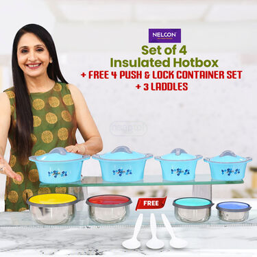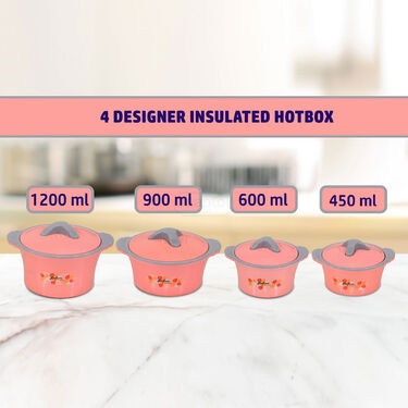 Introducing the ultimate kitchen companion: a set of four insulated casseroles accompanied by four Push & lock containers and three serving spoons. Crafted from food-grade plastic, these casseroles are not only elegant in design but also durable and break-resistant. With capacities ranging from 450ml to 1200ml, they cater to various serving needs. The included Push & lock containers offer additional storage convenience. Perfect for homemakers, working professionals, and gifting occasions, these casseroles ensure your dishes stay fresh and warm for hours. Elevate your culinary experience with this versatile and stylish kitchen essential